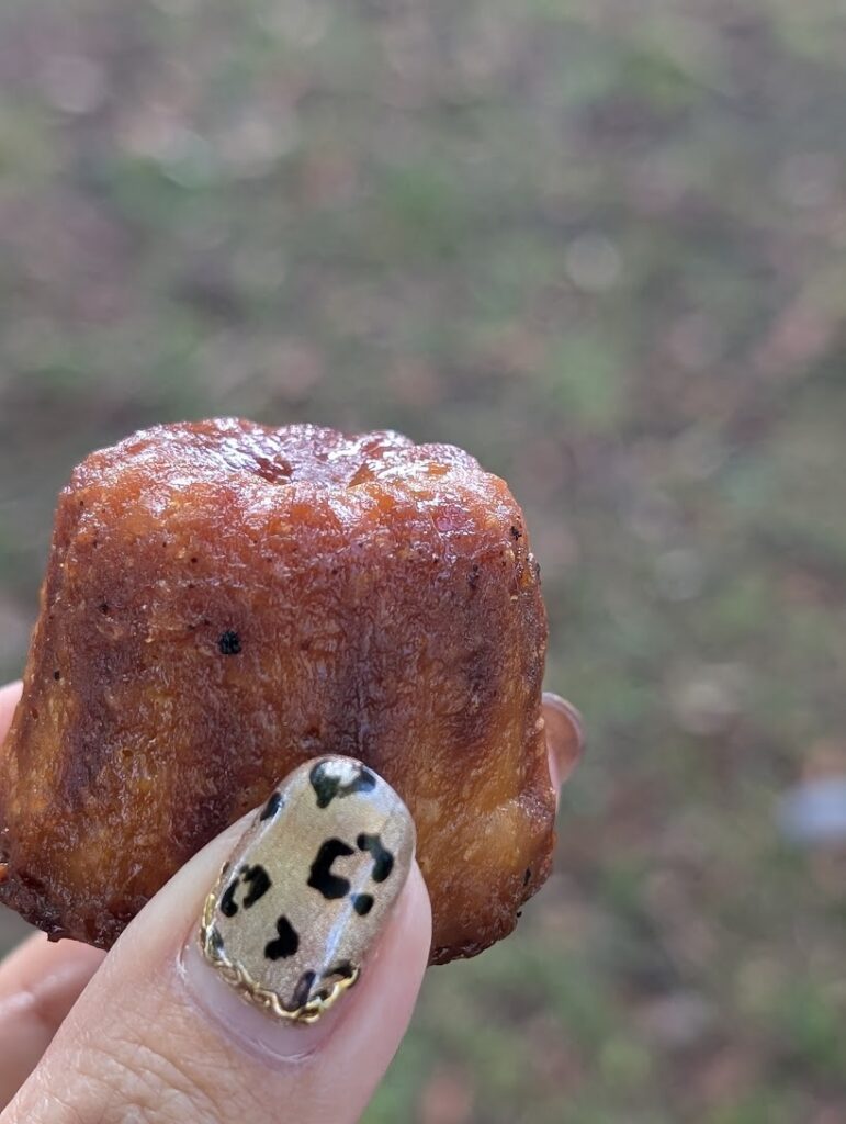 外側はカリッと香ばしくキャラメリゼされていて、内側はしっとりもちっとしたコントラストが魅力の焼き菓子です。