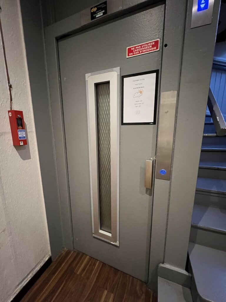 フランスあるあるの狭いエレベーター。スーツケースと私で定員オーバー気味(笑)