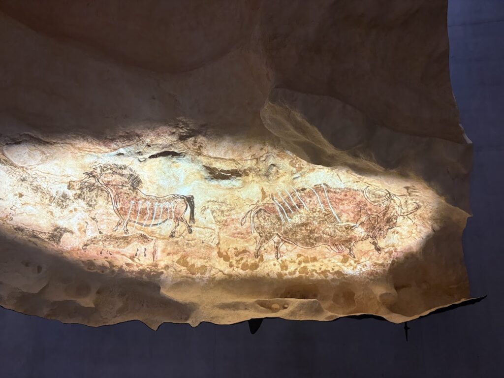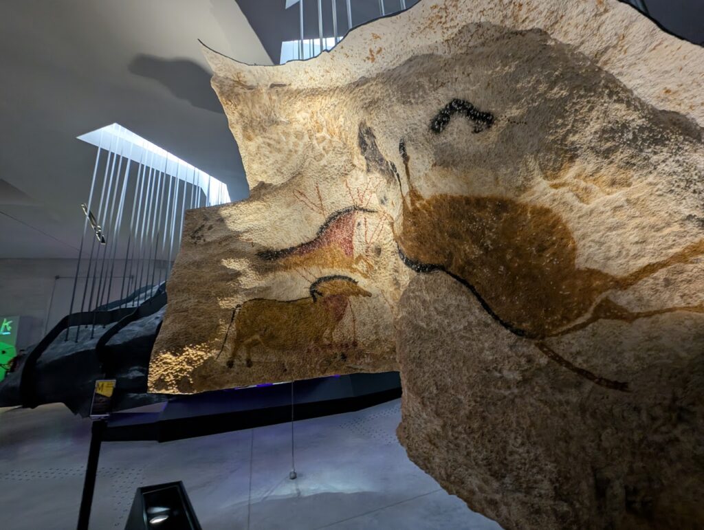 本物の洞窟と同じサイズ・起伏・湿度感まで再現されており、「牡牛の間」「軸索の間」など、教科書で見た有名な壁画を実際の配置そのままで見ることができます。